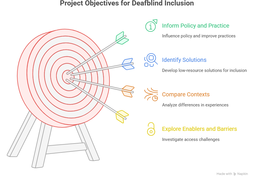- To compare the enablers and barriers in GS with those in the GN, to ascertain commonalities and differences across contexts and the role of local contextual factors in how deafblindness is experienced.